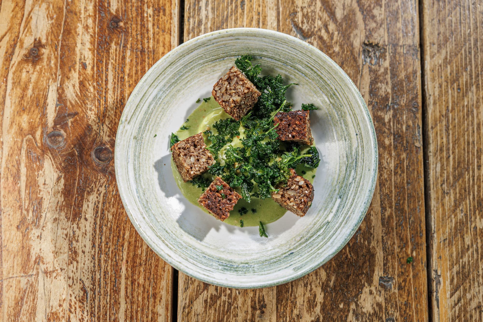 Kümmelkaramell | Ziegenfrischkäsecreme | Kräutersalat
