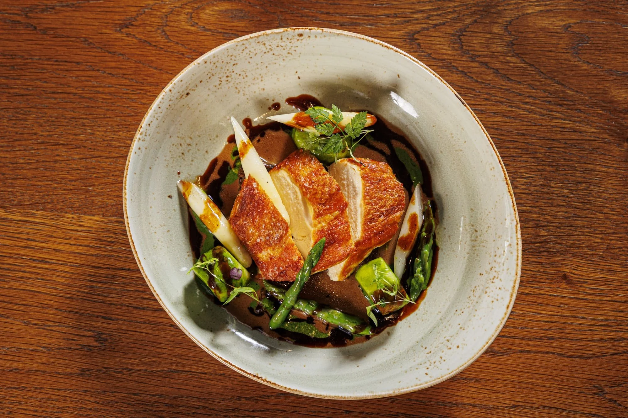 Lassen Sie sich von der außergewöhnlichen Kombination der Küchenstile inspirieren, die mit Präzision und Kreativität auf den Teller gebracht wird.